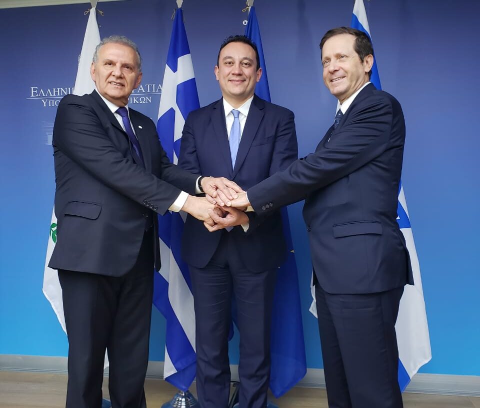 Με χαρά καλωσορίζω στο Υπουργείο Εξωτερικών τους ομολόγους μου από το Ισραήλ και την Κύπρο τους κ.κ. Herzog και Φωτίου, στο πλαίσιο διεξαγωγής τριμερών διαβουλεύσεων για θέματα Διασποράς.